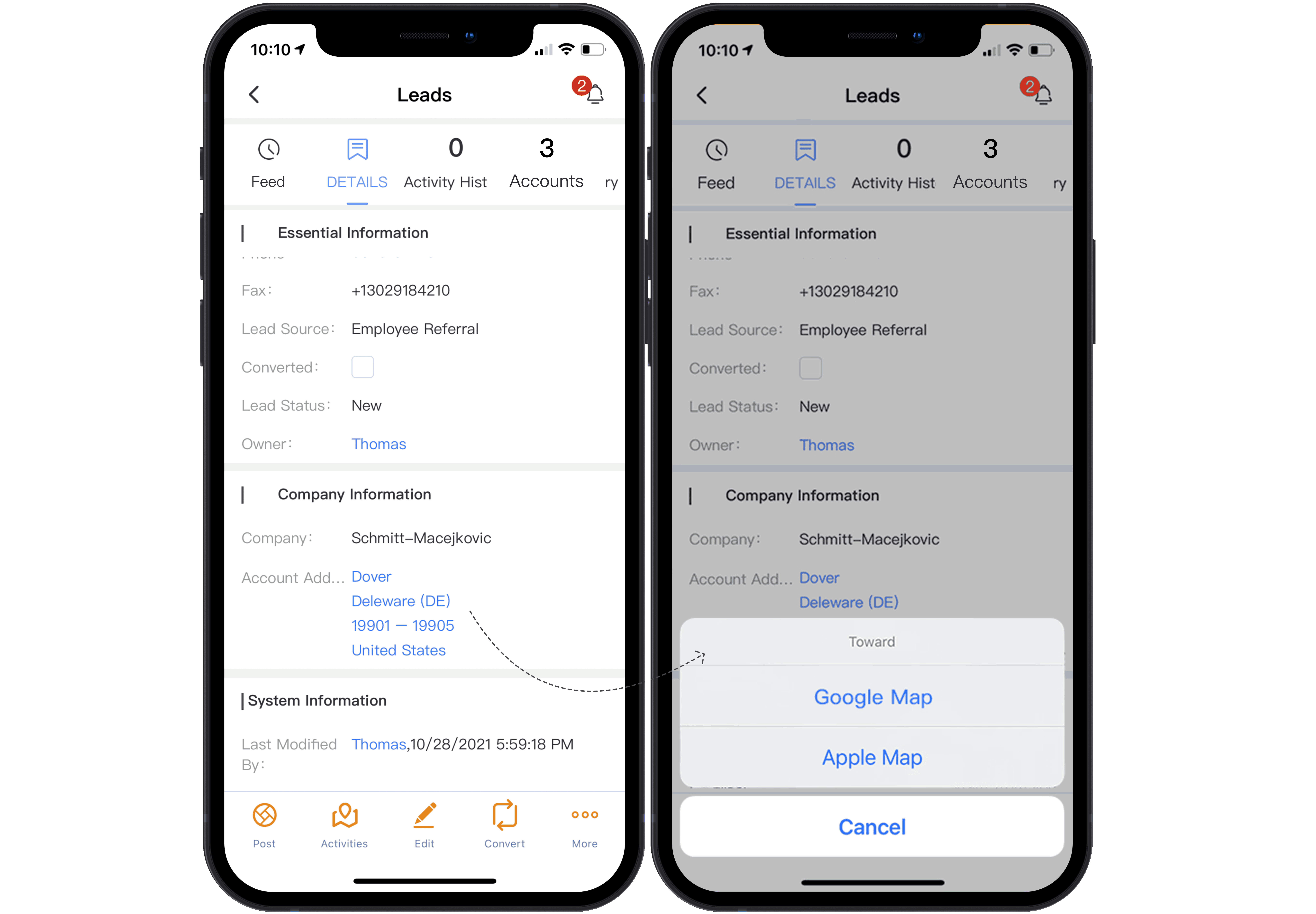 CloudCC CRM's intelligent navigation system helps you plan the best route to meet with leads. You can visualize data on an interactive map, filter the contacts or leads you want to get to know, and navigate to any customer or any planned route with one click, so as to help the salesperson efficiently complete the visit task.