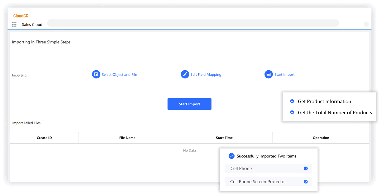 CloudCC Files helps you to import all products and manage the product lists.