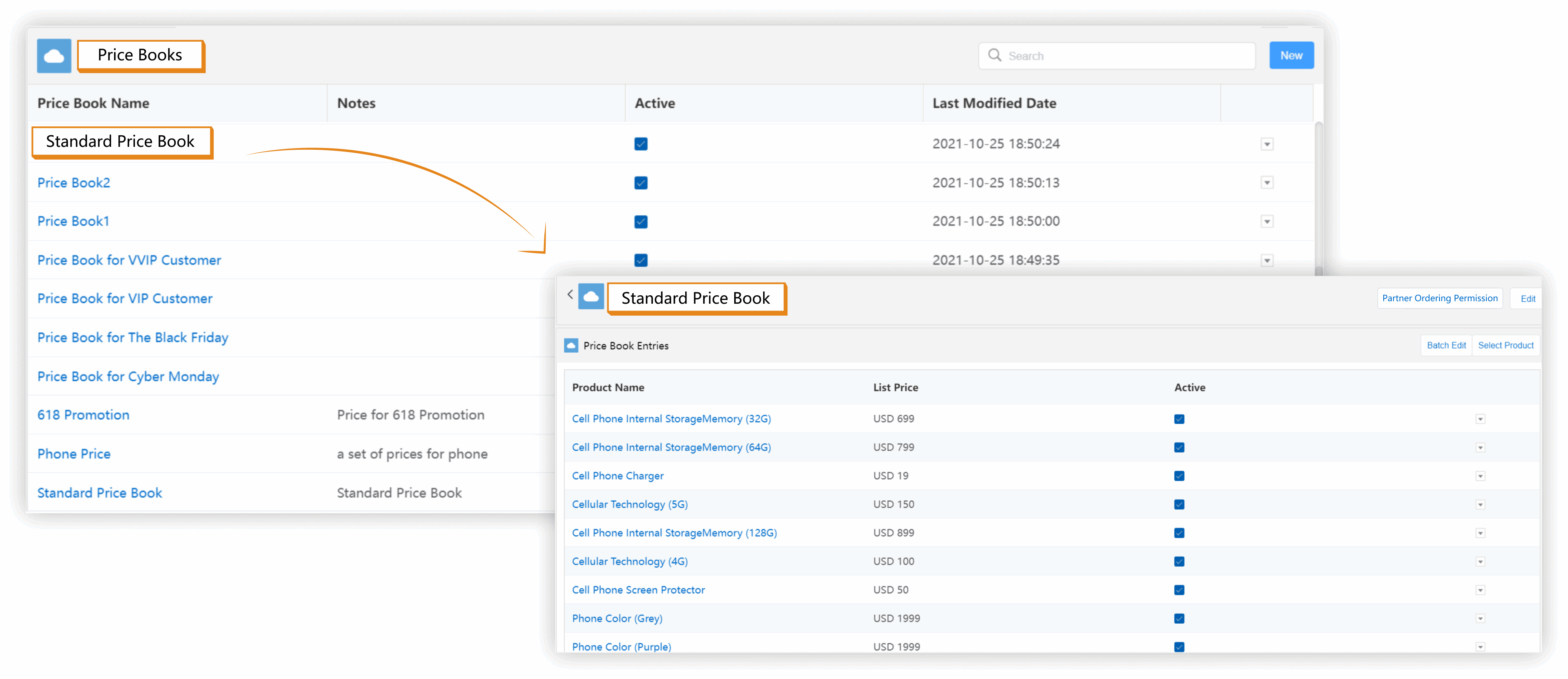 CloudCC supports the management of multiple price books. Sales staff can maintain price lists for different customers and manage product prices of different currencies in the same price book.