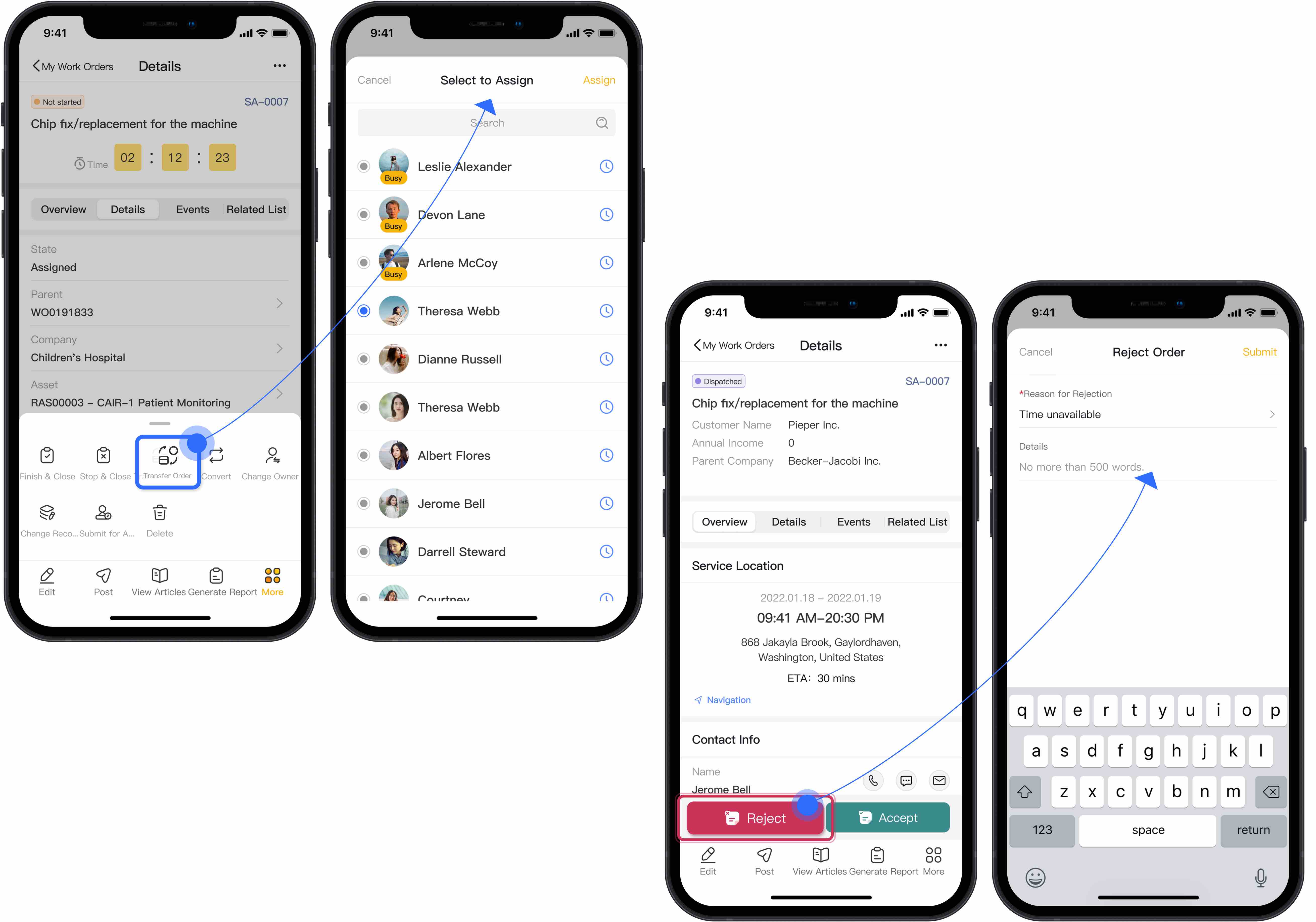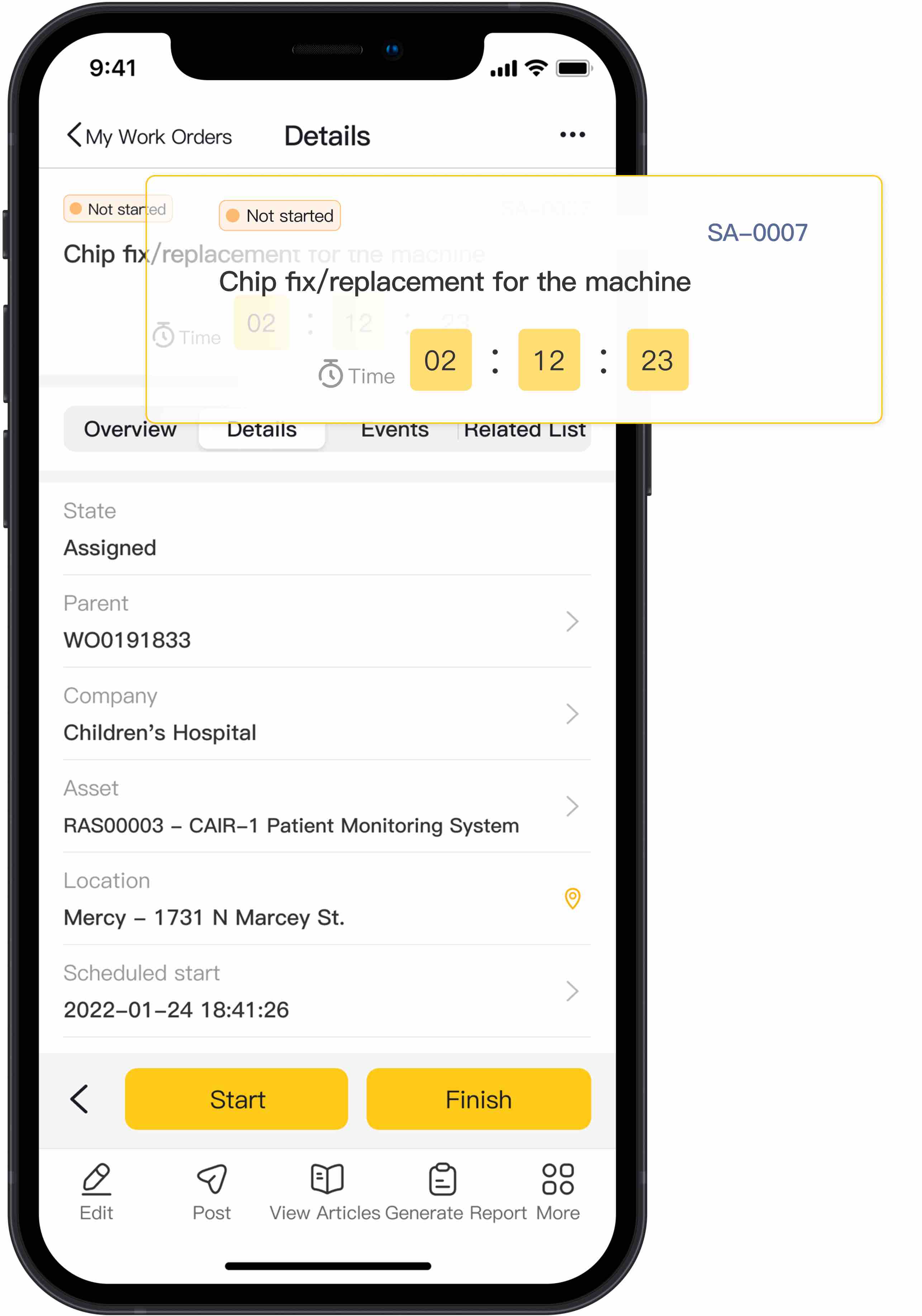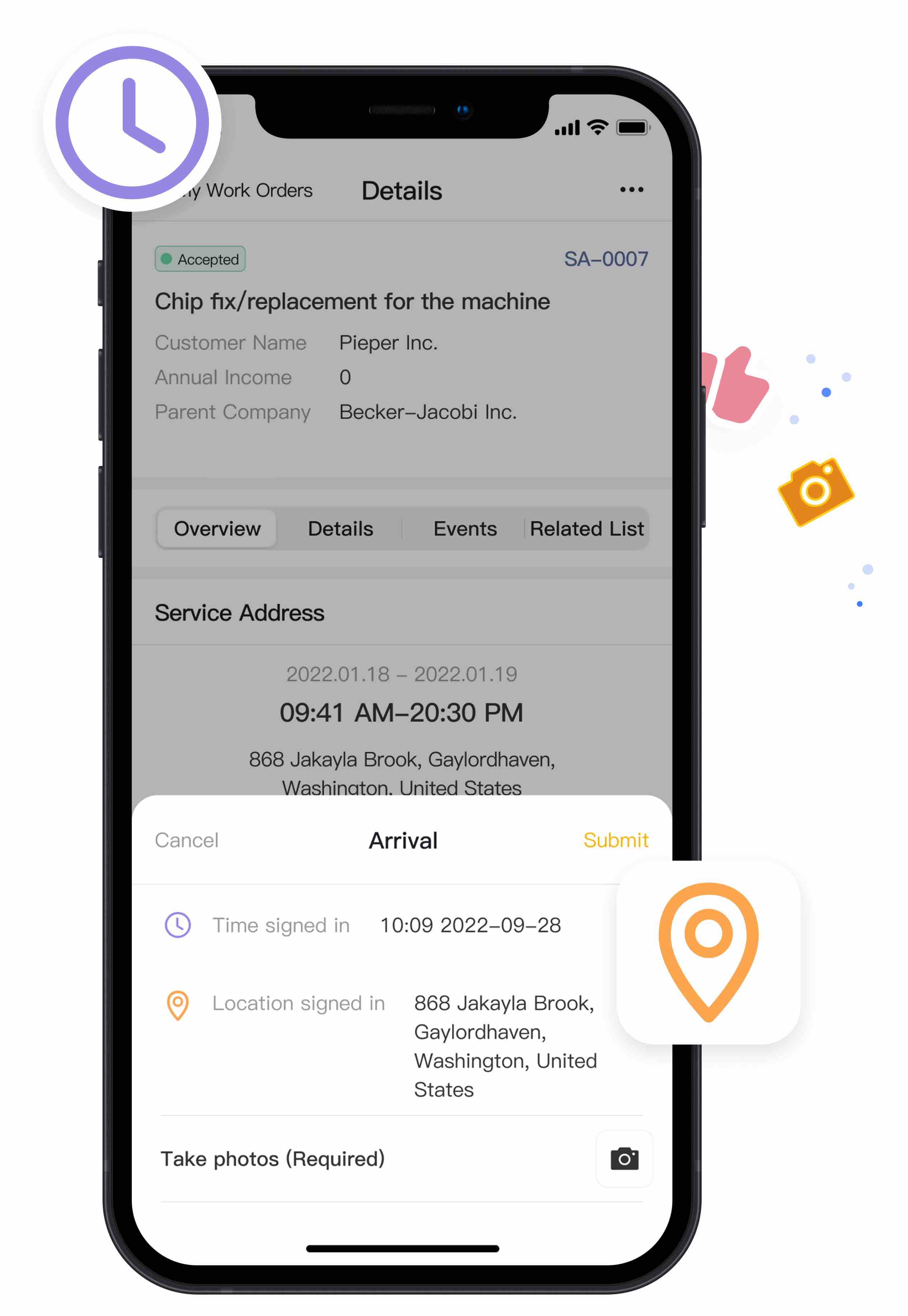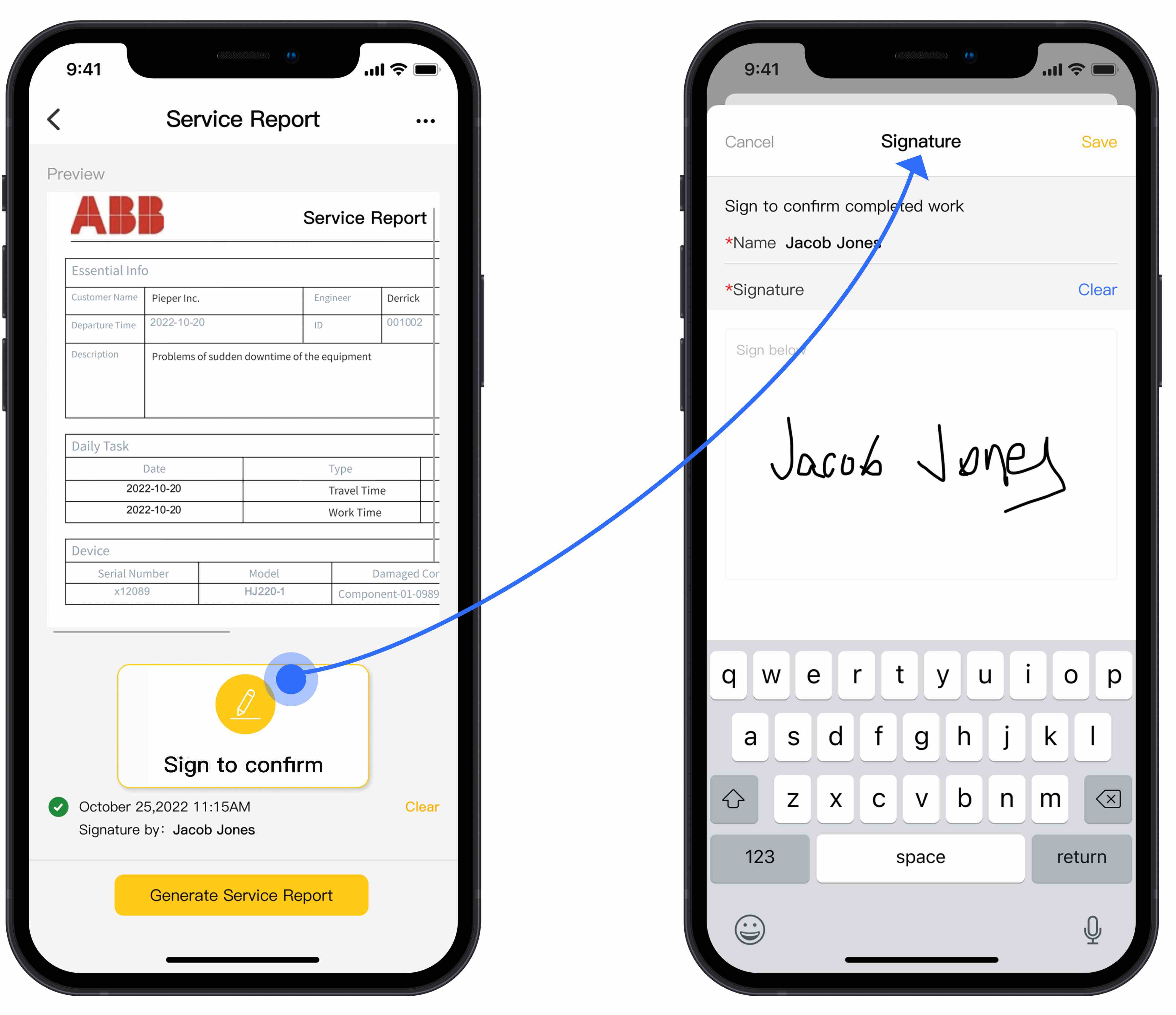 Engineers and customers can electronically sign the service report to confirm the end of the service. The signed service report provides evidence for the service process.