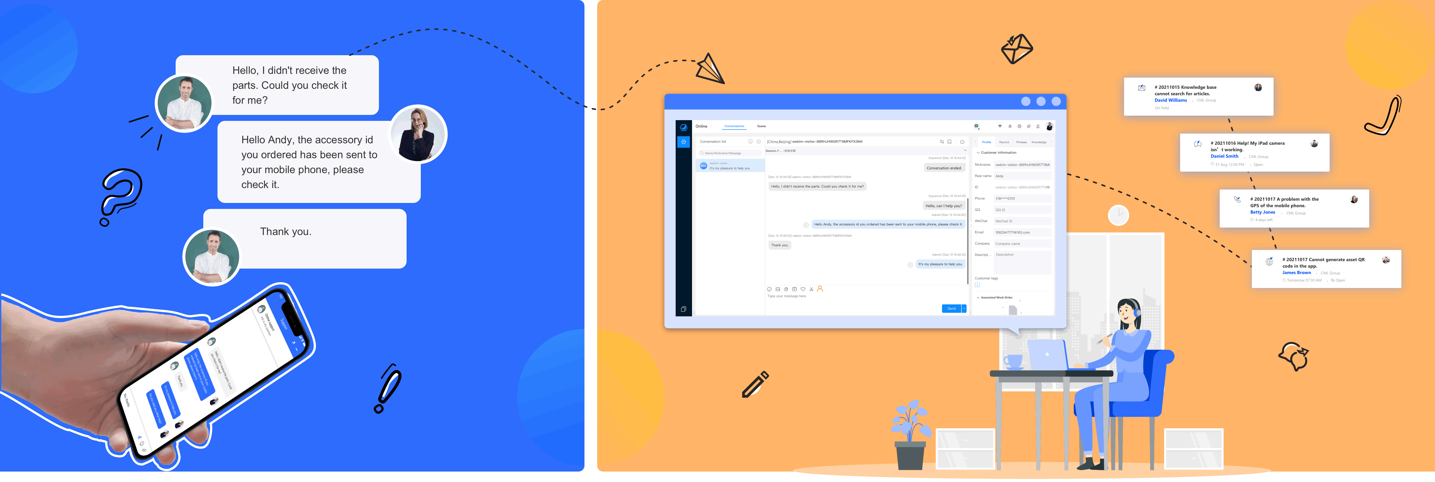 Customer service robot can take on the role of customer service agent in the absence of a human agent, and it can automatically answer customer questions and provide relevant solutions with knowledge articles. Over time, the robot will also learn and improve its problem-solving abilities.