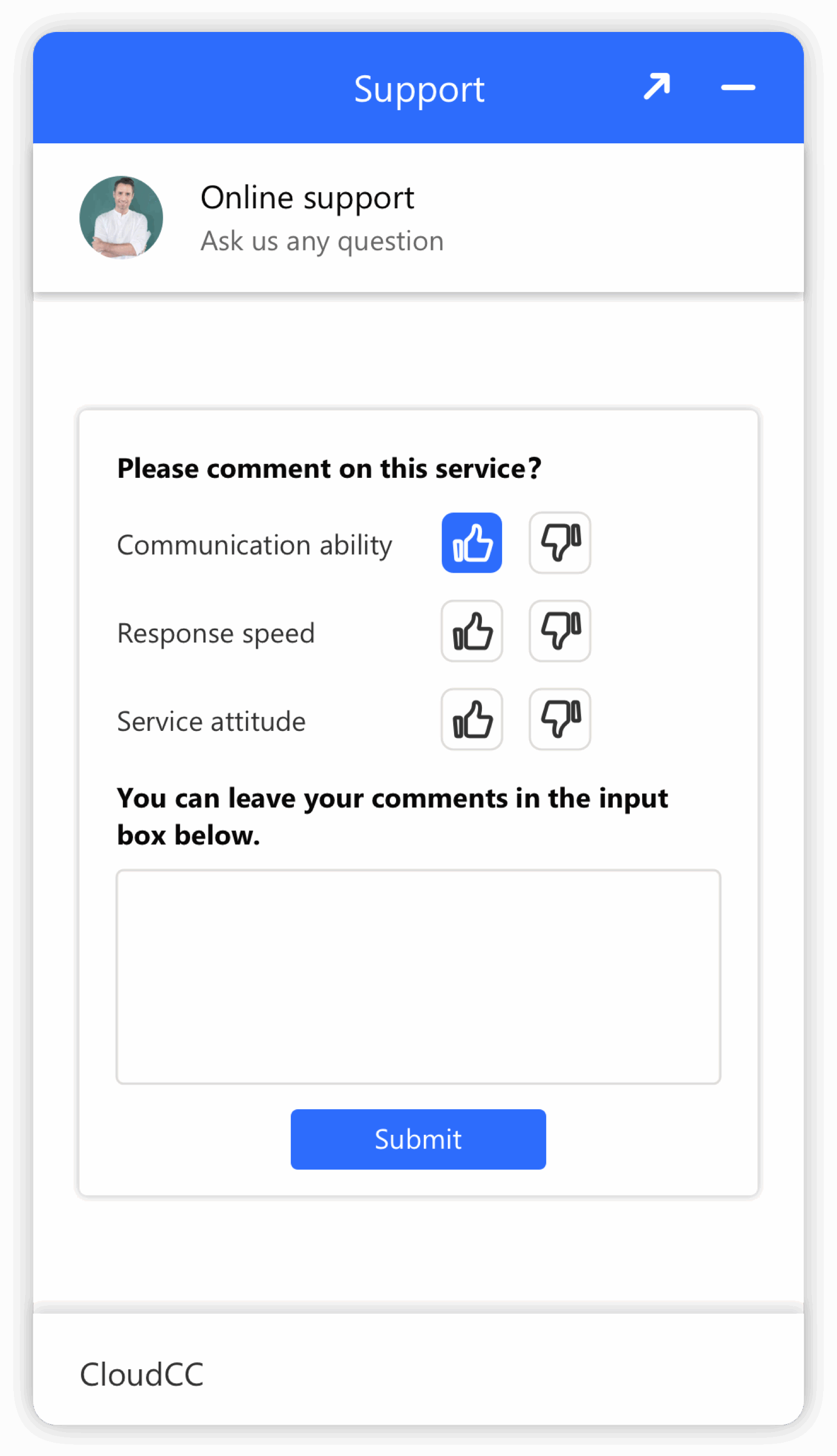 When interacting with customers, it's important to know if customers find customer service answers useful. The agents can now easily get customer feedback, with a customer satisfaction ratings in the chat window.